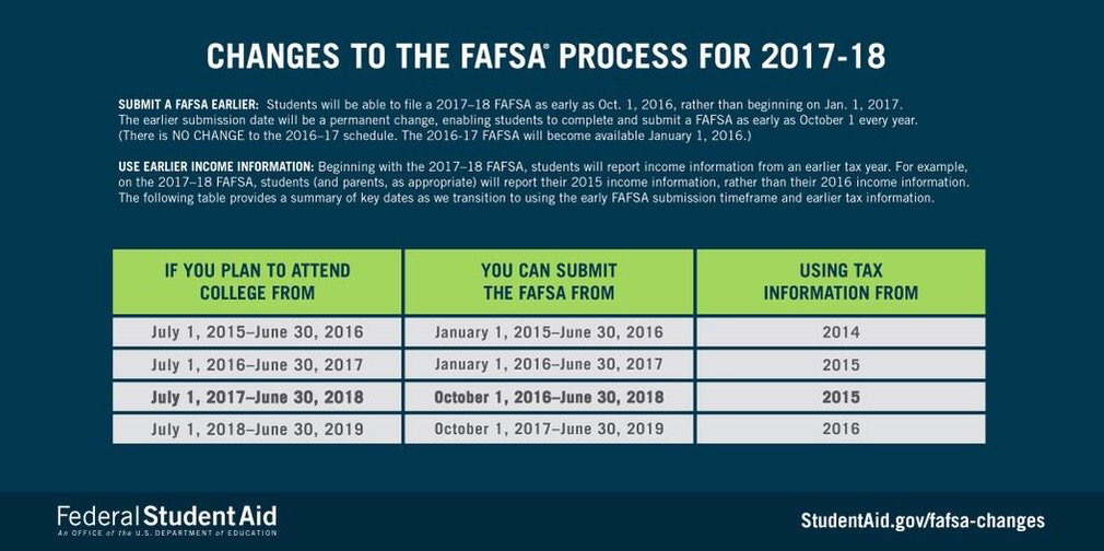 For those of you with high school seniors, you should be aware that the 2018-2019 FAFSA is available October 1st. You can complete the form as early as that date, particularly if your child is applying for EARLY DECISION or EARLY ACTION. If for those students applying for college through REGULAR Admission, the FAFSA may be completed later. My suggestion would be to survey the colleges your child is likely to apply to for their FAFSA deadline for incoming freshmen. Remember that any student applying for federal or state financial aid, including student loans, must complete a FAFSA. There is no fee for submitting a FAFSA.